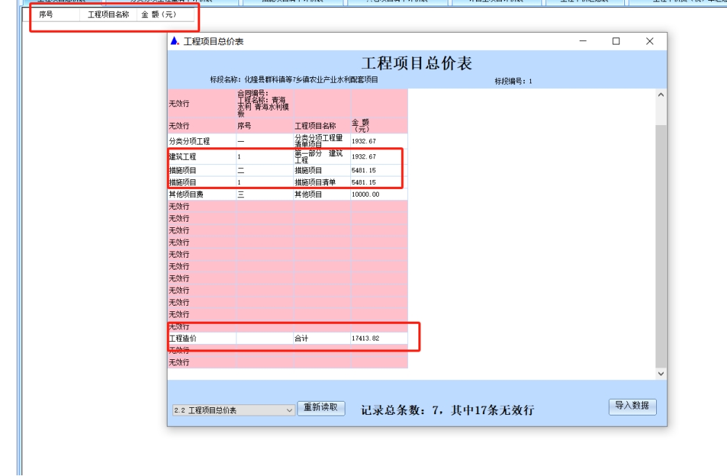6. 报表全部导入后核对完毕后点击开始生成投标清单格式