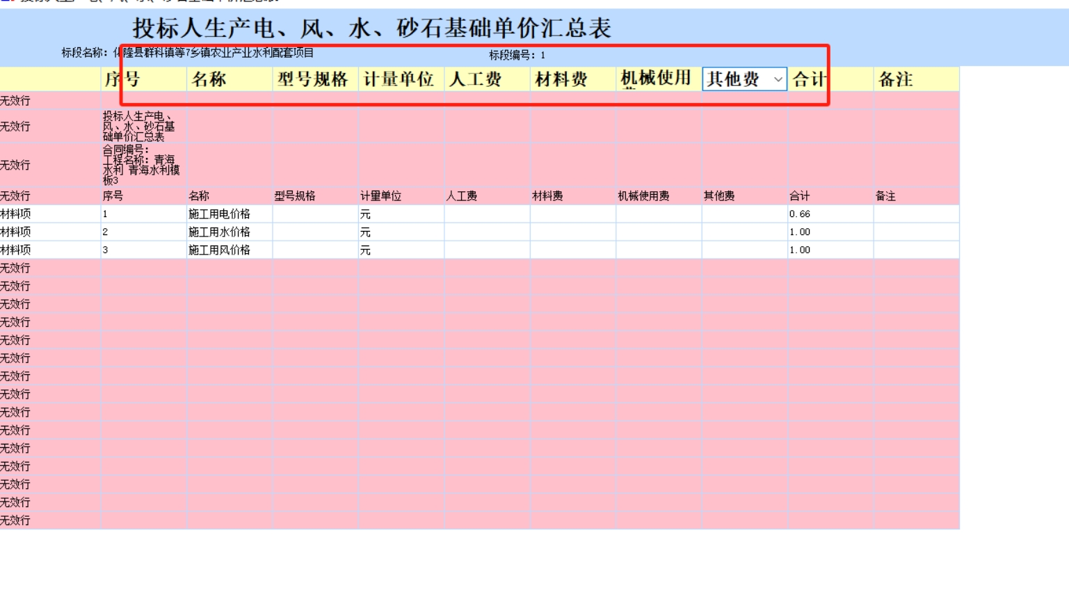 3. 在工程信息中填写相关投标信息及报价,报价需与工程项目总价表一致,表头需要对应。