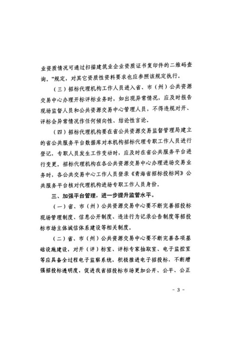 青海省公共资源交易监督管理局关于印发进一步加强工程建设项目招标代理机构管理工作的通知