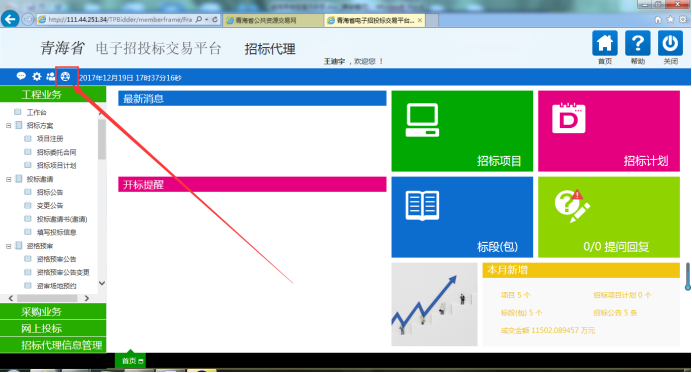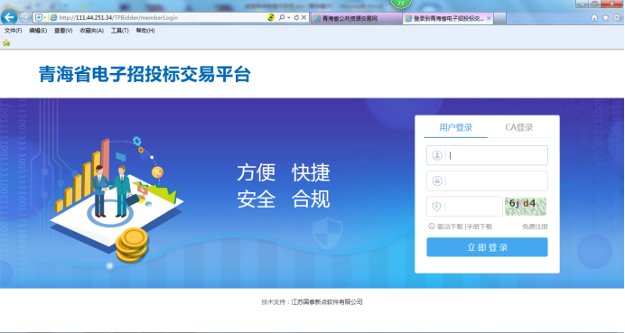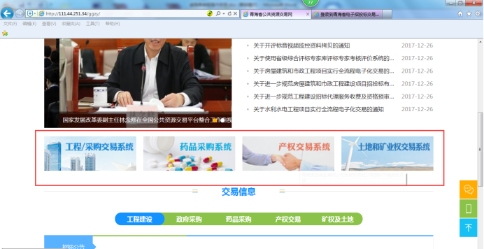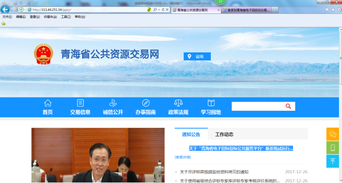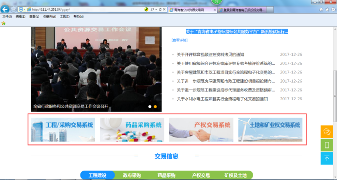 1、 登录至青海省公共资源交易网平台中,登录地址:http://111.44.251.34/ggzy/