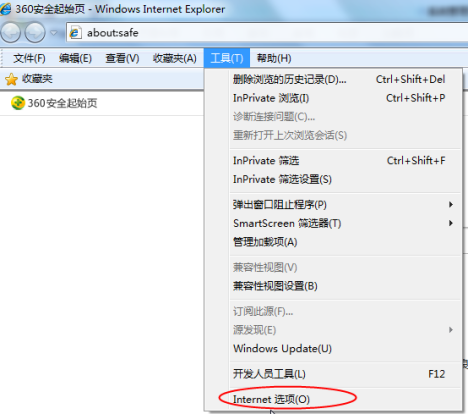 1、打开浏览器,在“工具”菜单→“Internet选项”