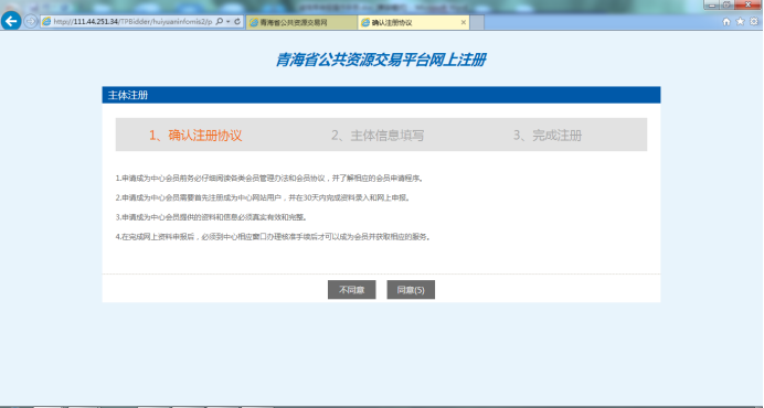阅读注册协议,若对注册协议无异议,点击同意按钮进行下一步: