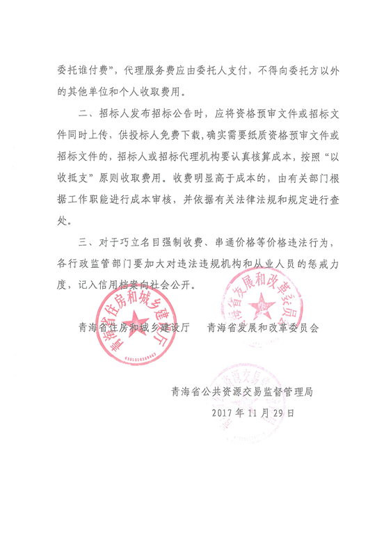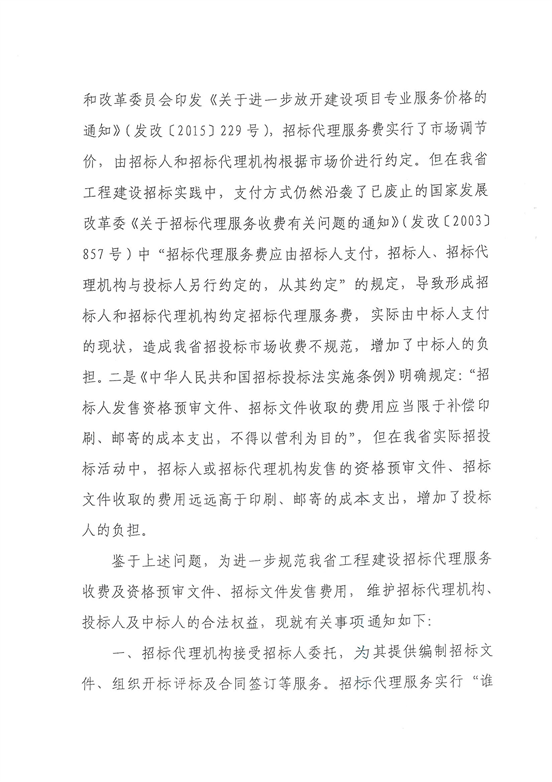 关于进一步规范工程建设招标代理服务收费及资格预审文件招标文件发售费用通知