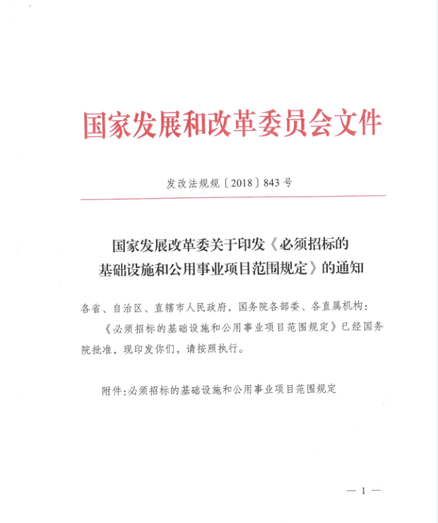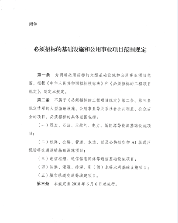 国家发展改革委关于印发《必须招标的基础设施和公用事业项目范围的规定》的通知