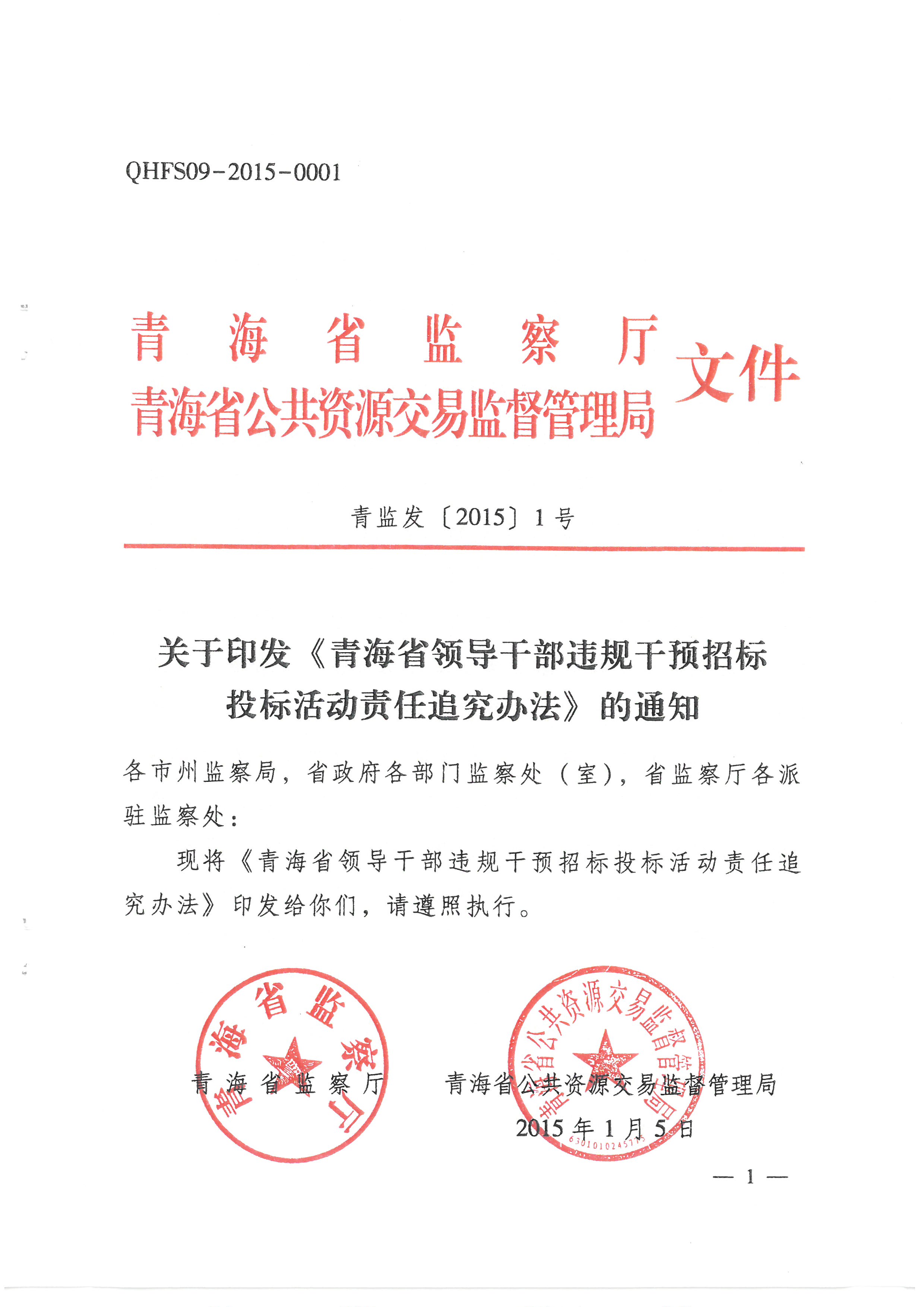 关于印发《青海省领导干部违规干预招标投标活动责任追究办法》的通知