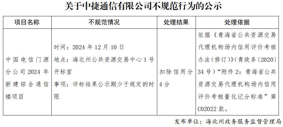 关于中捷通信有限公司不规范行为的公示