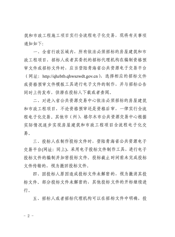 关于房屋建筑和市政工程项目实行全流程电子化交易的通知