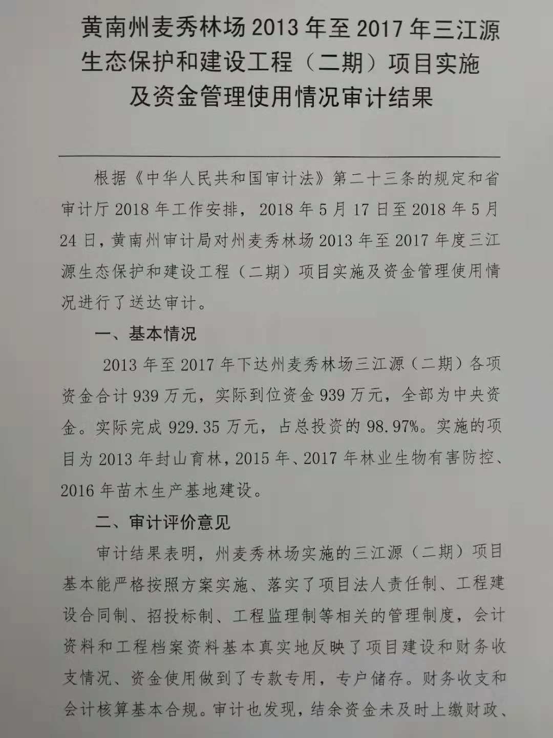 转发青海省黄南州审计局审计结果公告(2018年第02号)