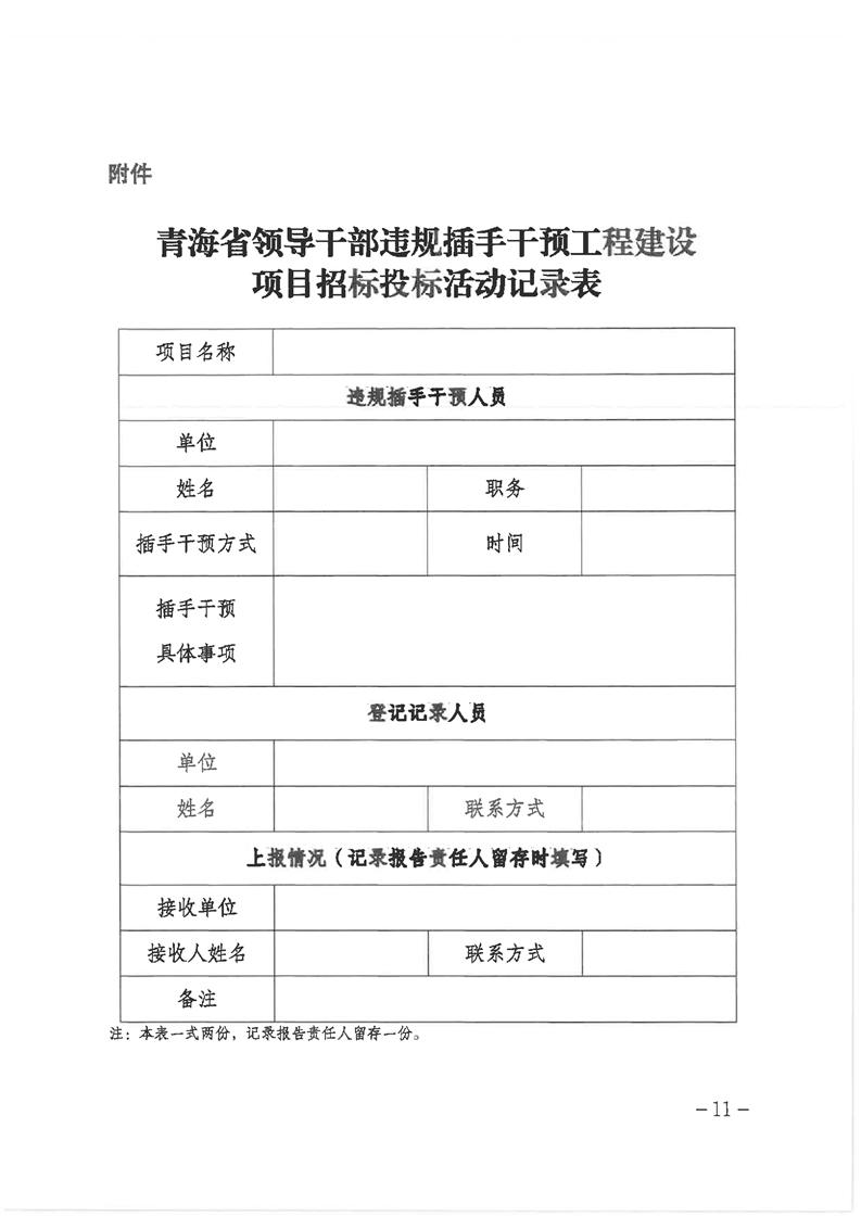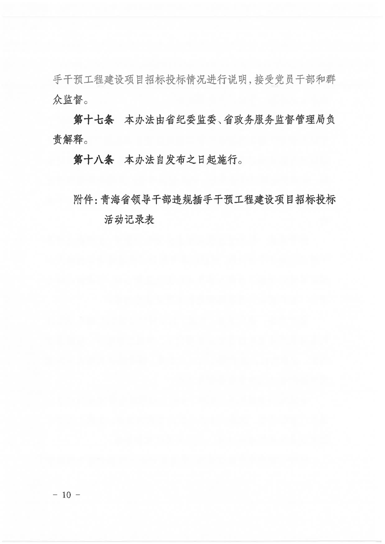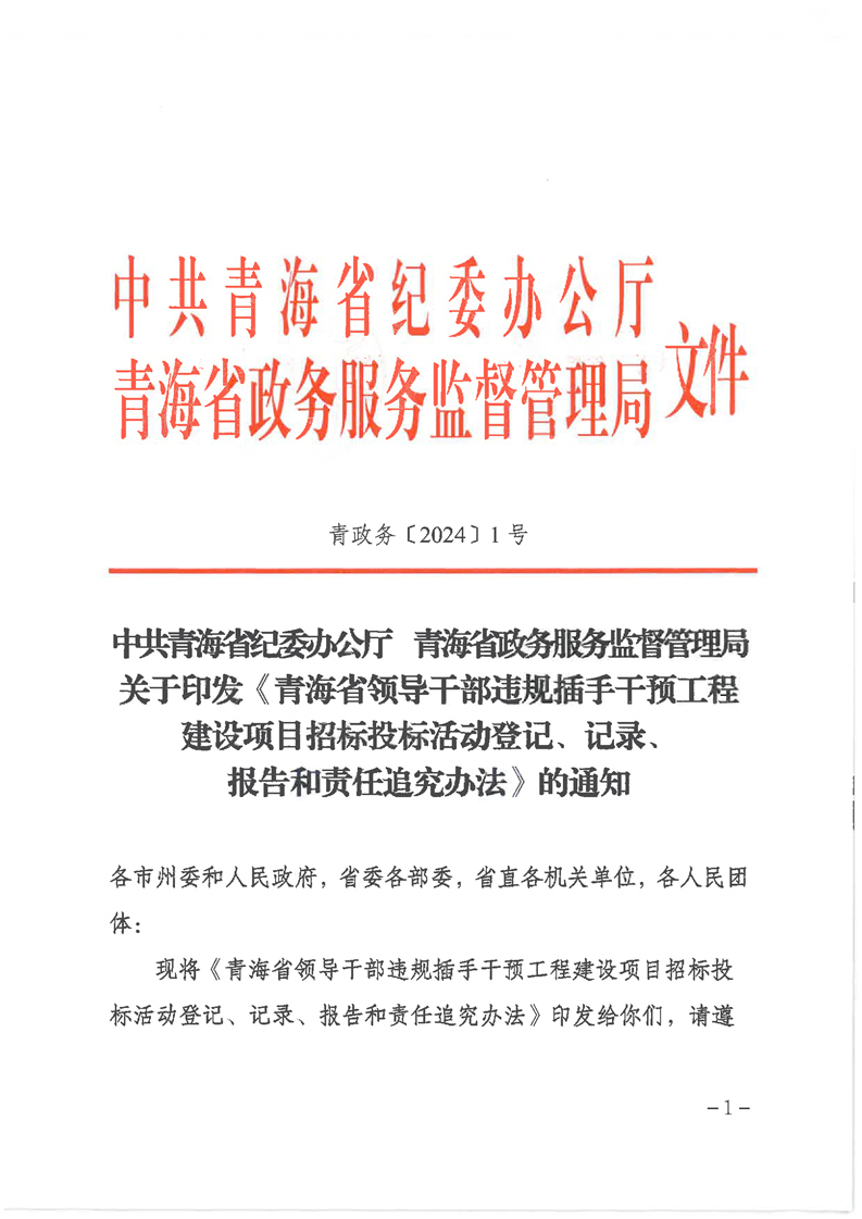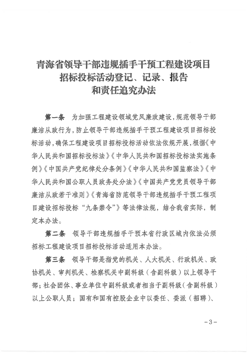 关于印发《青海省领导干部违规插手干预工程建设项目招标投标活动登记、记录、报告和责任追究办法》的通知