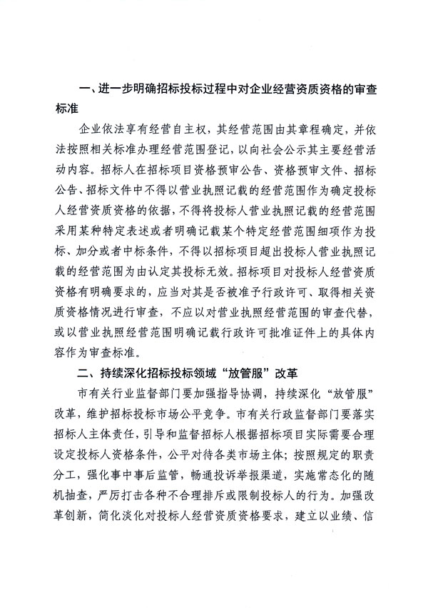 关于进一步明确招标投标过程中企业经营资质资格审查标准的通知