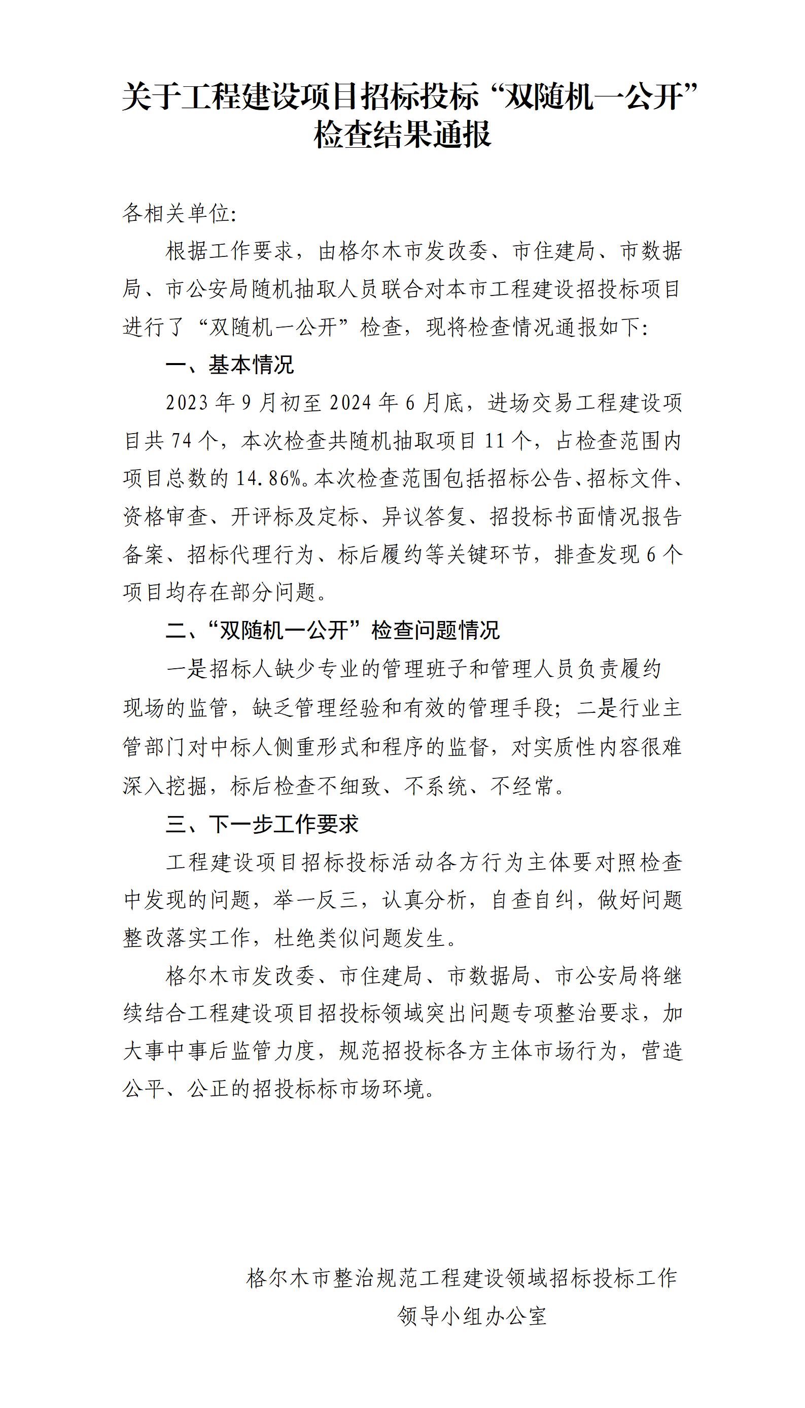 关于工程建设项目招标投标“双随机一公开”检查结果通报