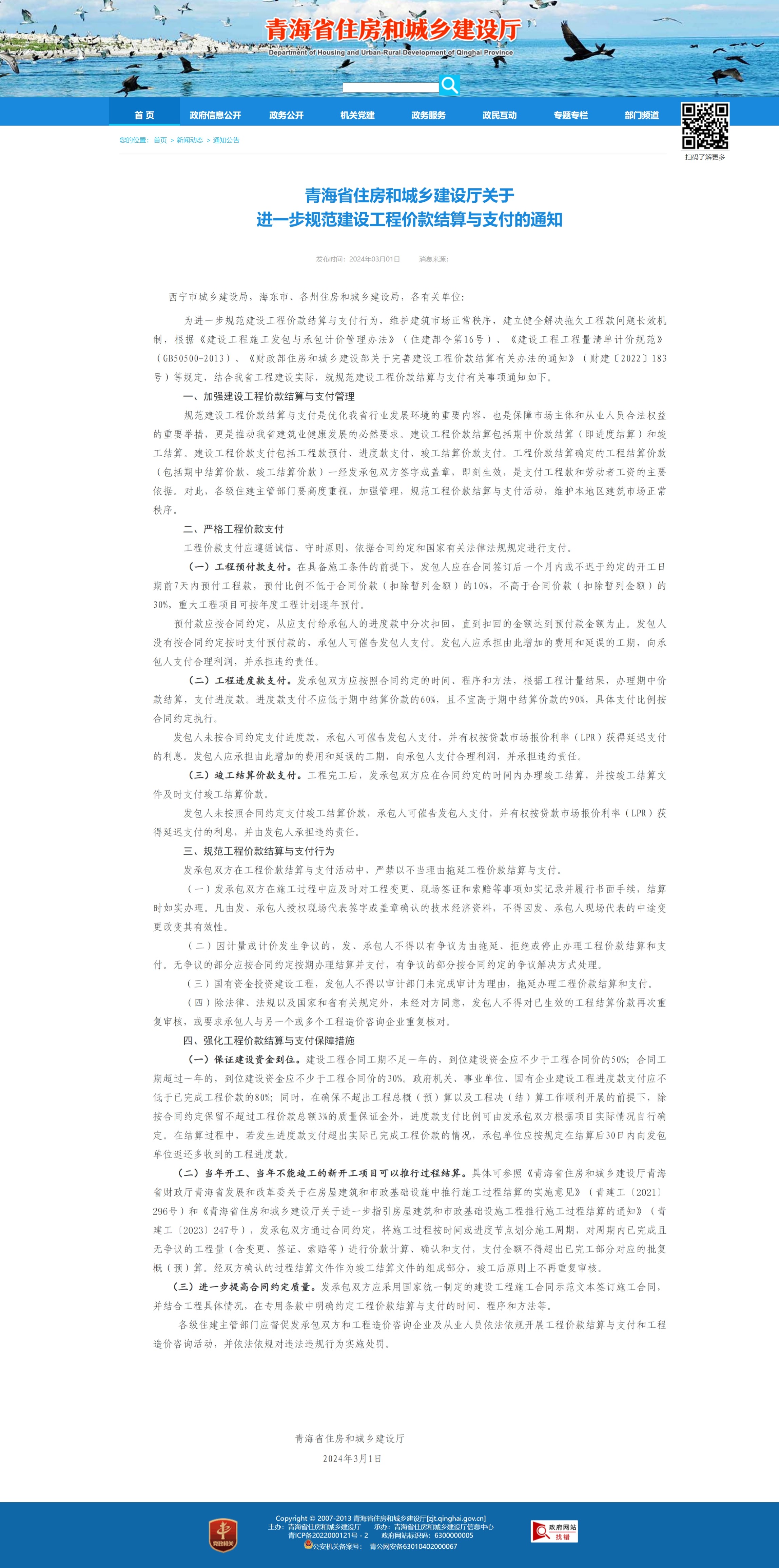 转发:青海省住房和城乡建设厅关于进一步指引房屋建筑和市政基础设施工程推行施工过程结算的通知