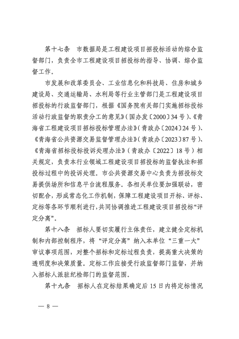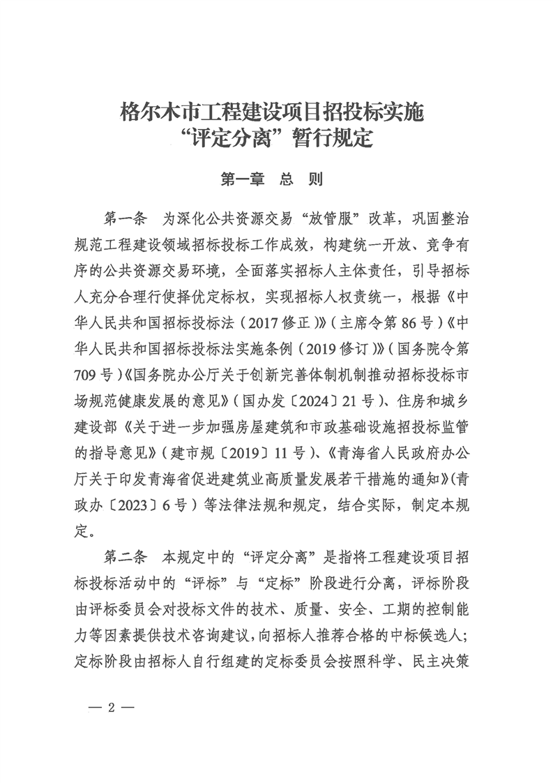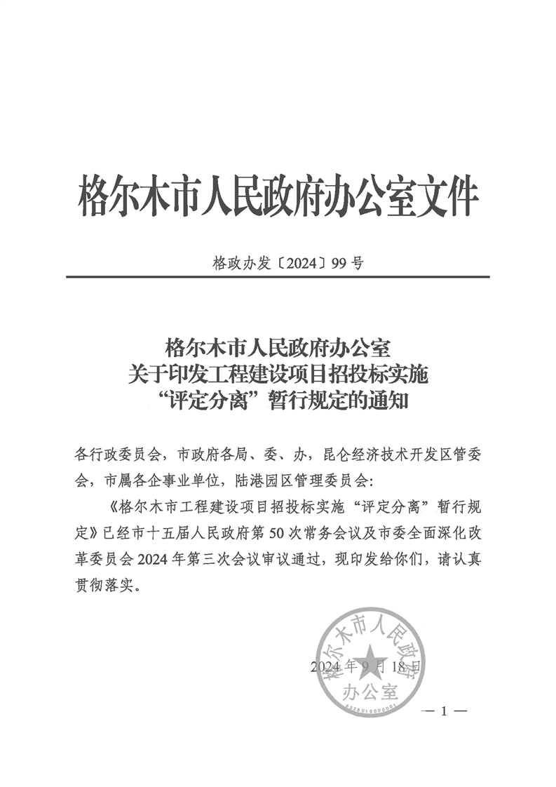 格尔木市人民政府办公室关于印发工程建设项目招投标实施“评定分离”暂行规定的通知
