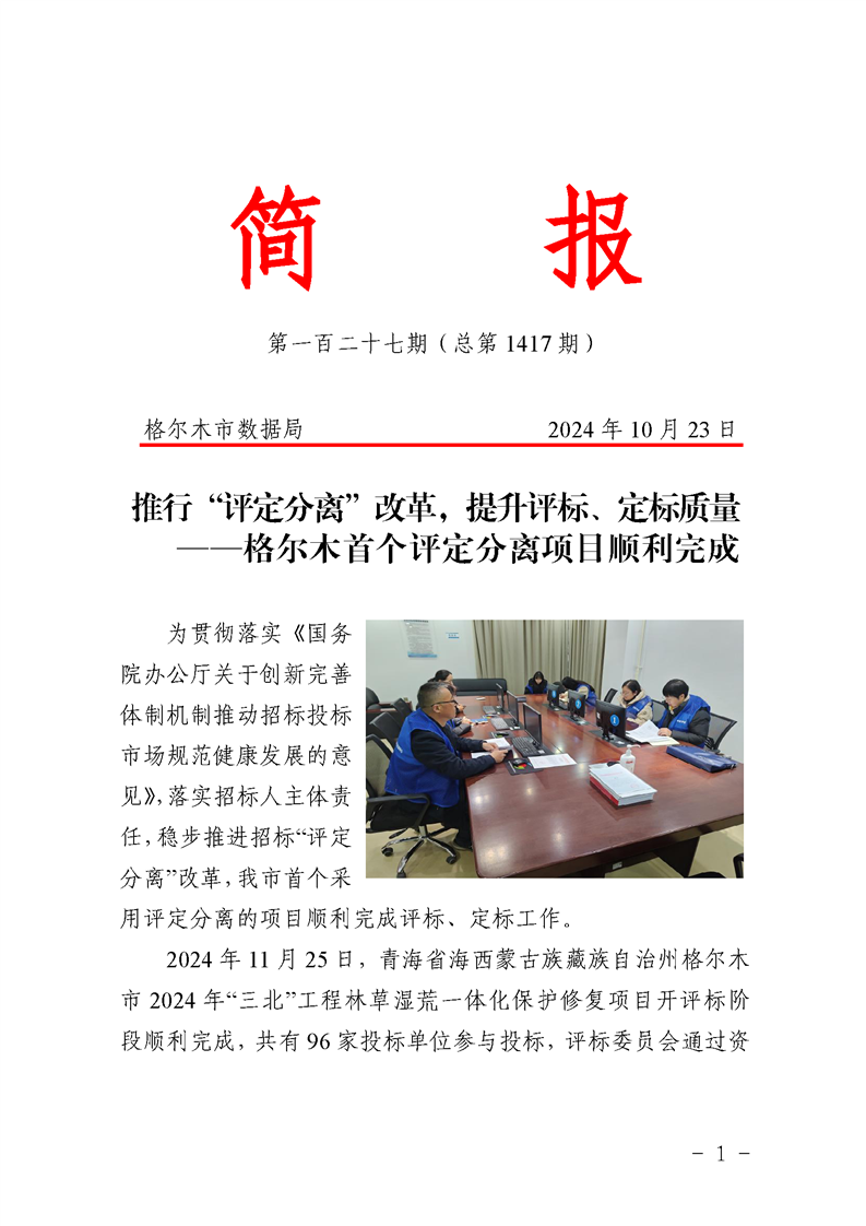 推行“评定分离”改革,提升评标、定标质量——格尔木首个评定分离项目顺利完成