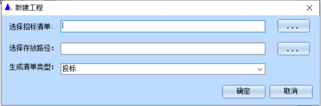 2. 选择新建工程,选择水利招标清单格式,选择投标状态,点击确定