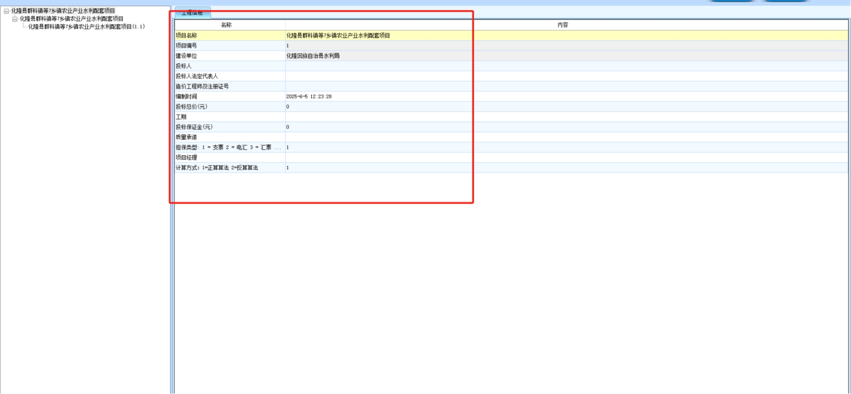 3. 在工程信息中填写相关投标信息及报价,报价需与工程项目总价表一致,表头需要对应。