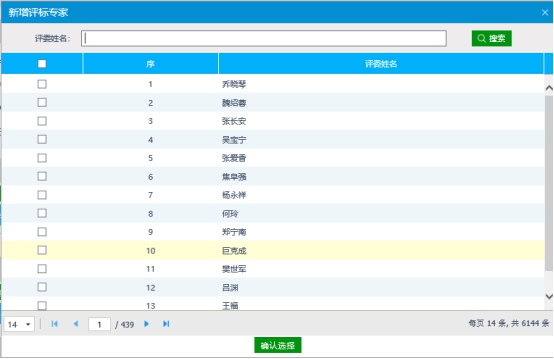 6.进入新增评标专家页面,输入专家名称进行搜索,勾选相应的专家,点击确定选择。