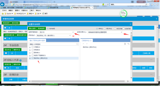 点击03专业信息部分下的【添加专业】按钮挑选所需的评标专业、评标专家所属地区。