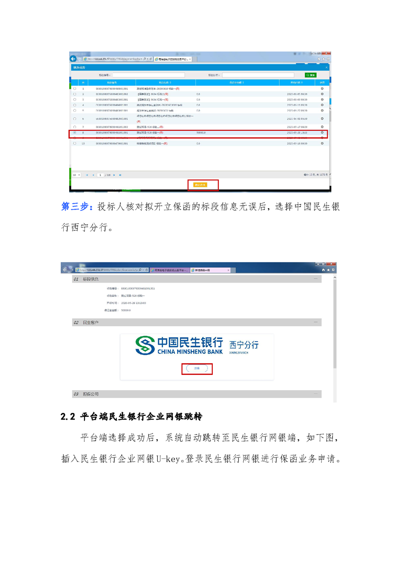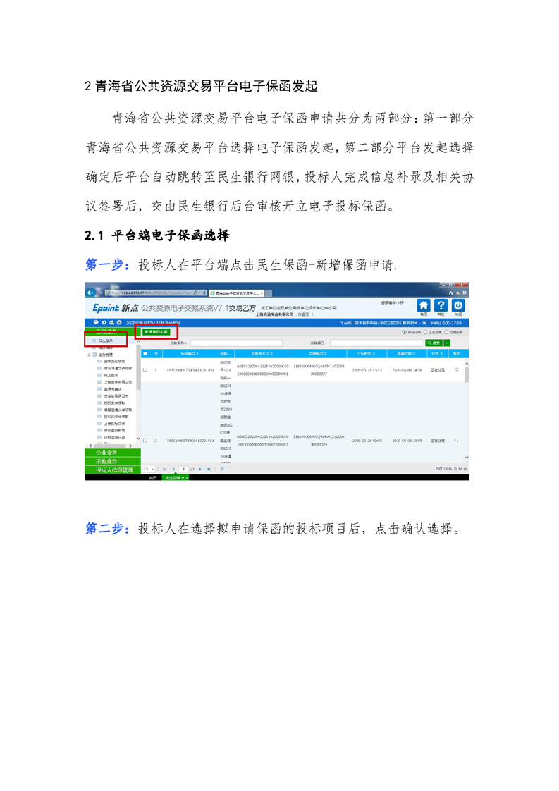 青海省公共资源交易平台投标人(民生银行客户)电子保函申请操作手册