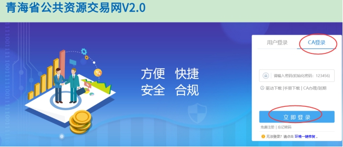 二、使用编制该投标文件的CA数字证书登录《青海省公共资源交易网》。