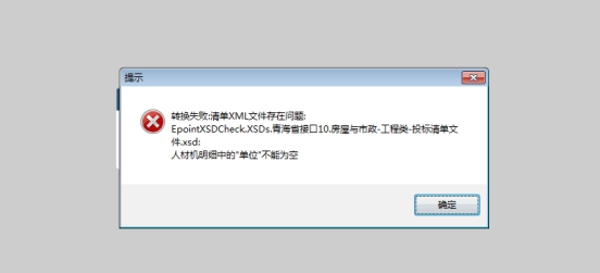 投标文件中进行工程量清单生成,提示清单XML文件存在问题