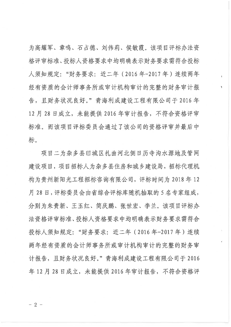关于对省审计厅移送杂多县吉乃沟清水沟水源地保护建设工程项目招标代理机构及评标委员会未履行职责问题的处理通报