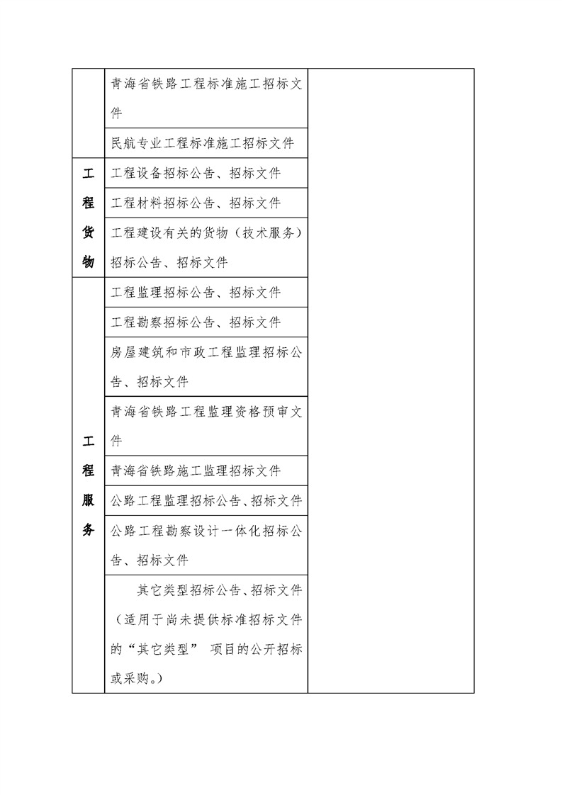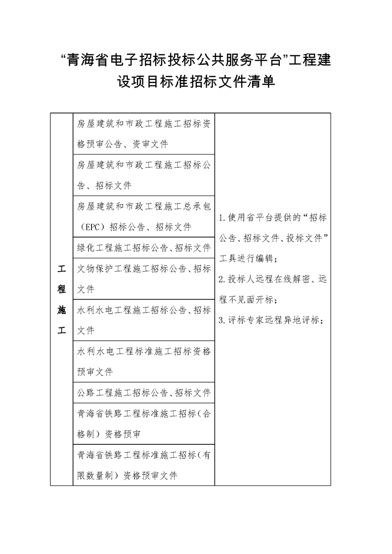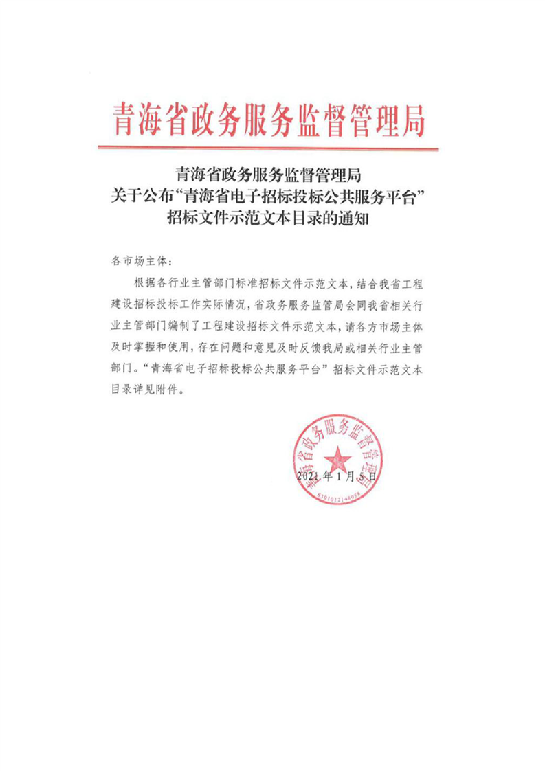 关于公布“青海省电子招标投标公共服务平台”招标文件示范文本目录的通知