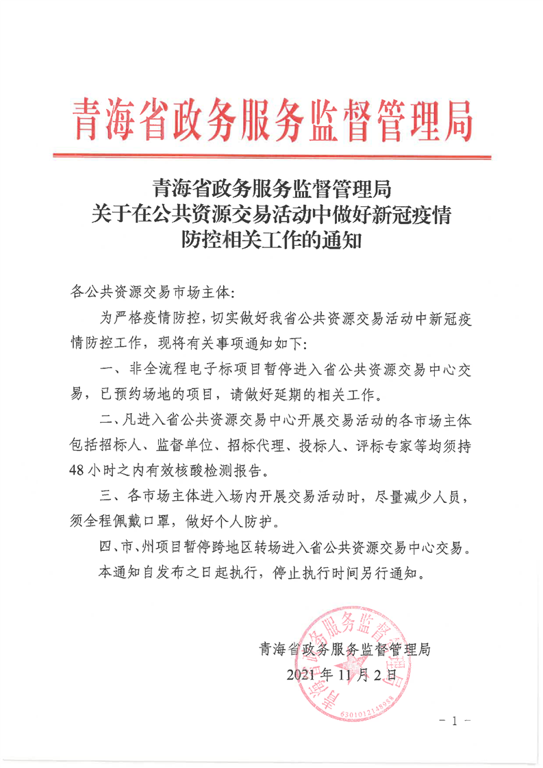 关于在公共资源交易活动中做好新冠疫情防控相关工作的通知
