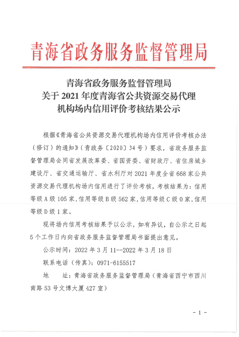 该招标代理机构存在虚假招标行为,依据《青海省公共资源交易代理机构场内信用评价考核办法(修订)的通知》(青政务〔2020〕34号)第十八条规定,确定为D级。