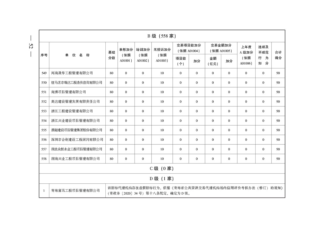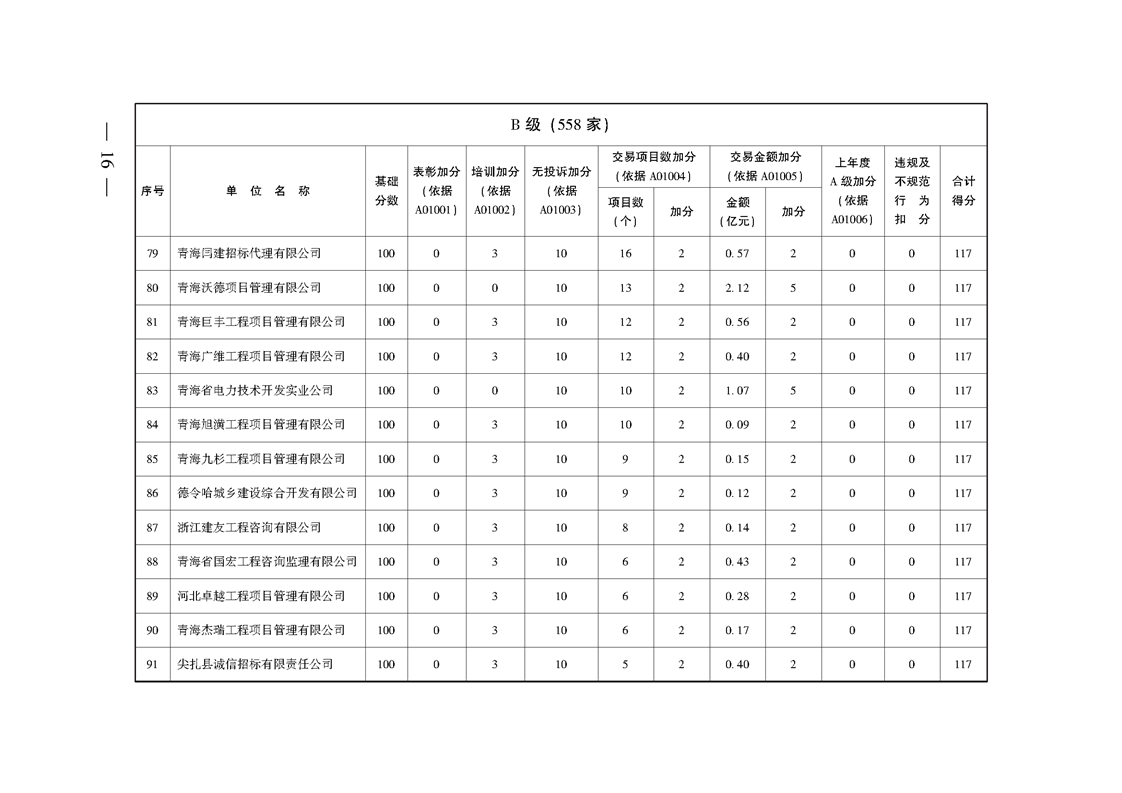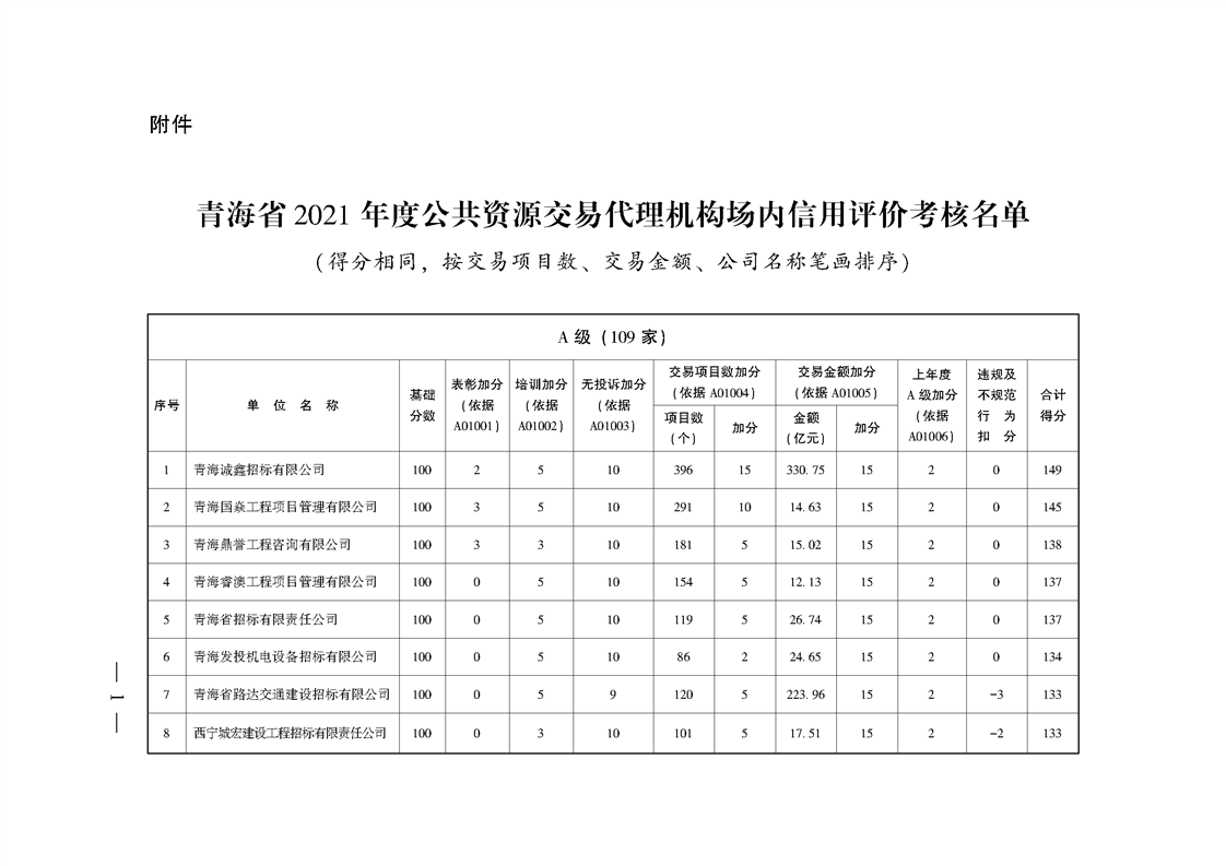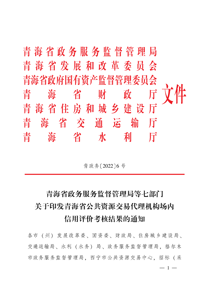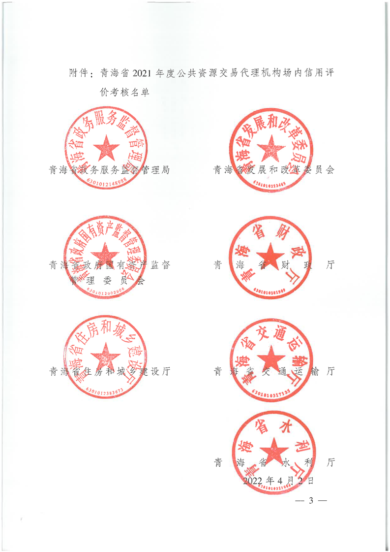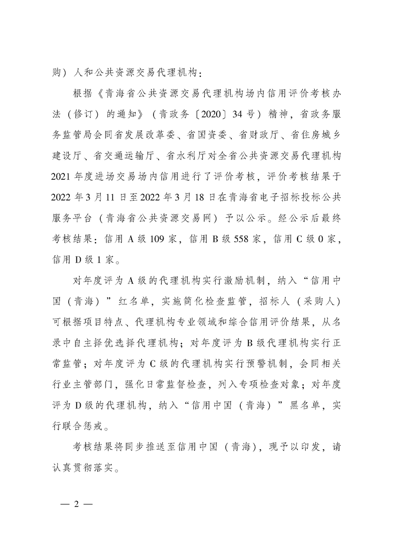 关于2021年度青海省公共资源交易代理机构场内信用评价考核结果的通知