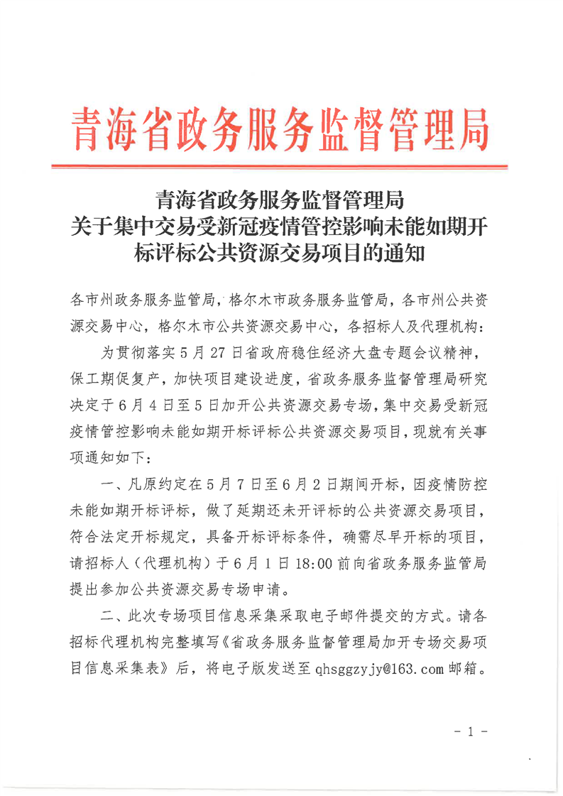 关于集中交易受新冠疫情管控影响未能如期开标评标公共资源交易项目的通知
