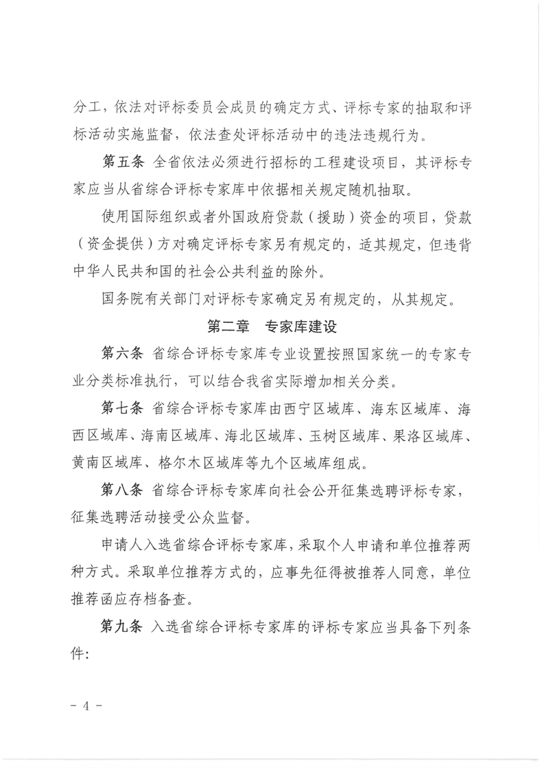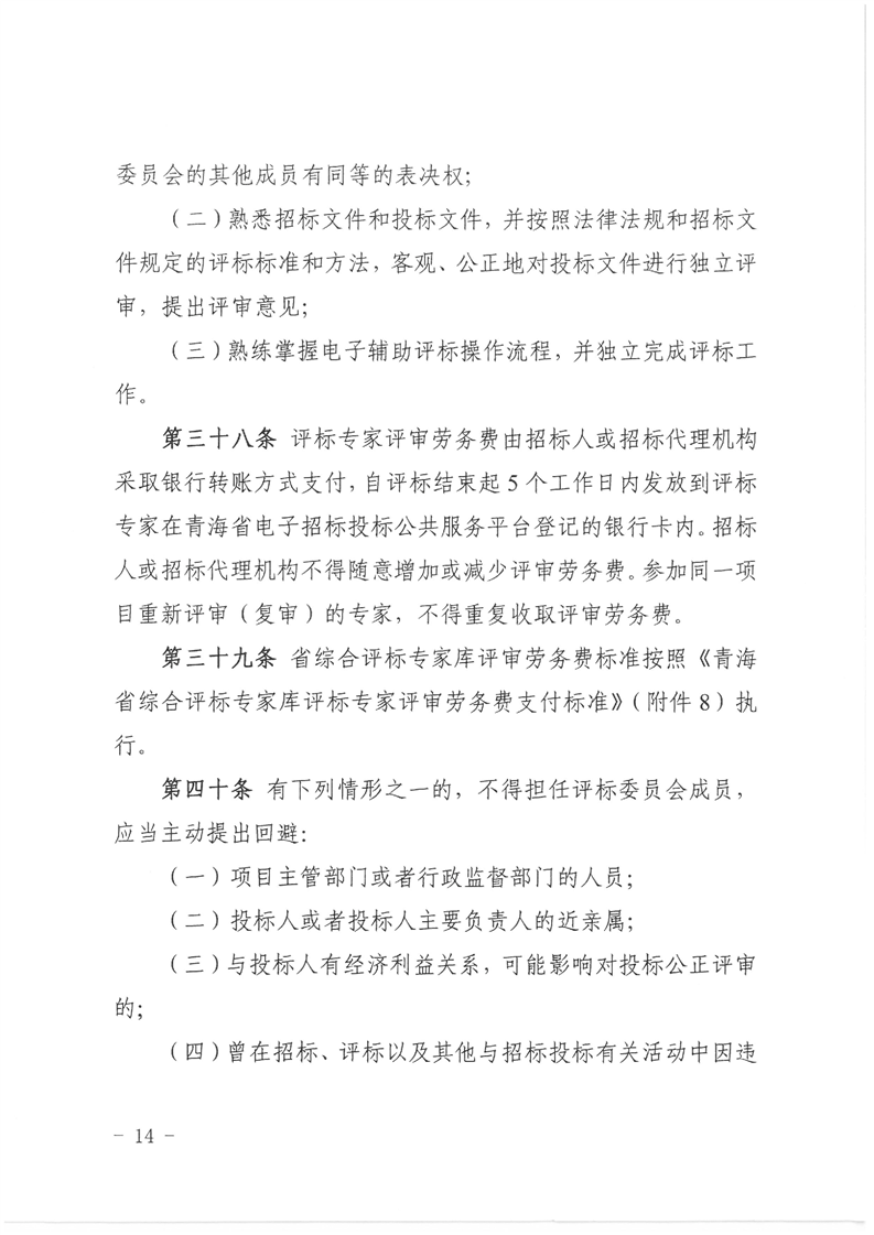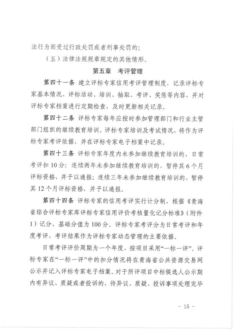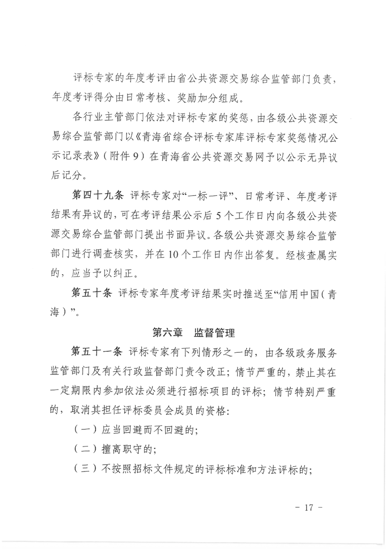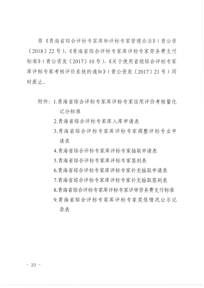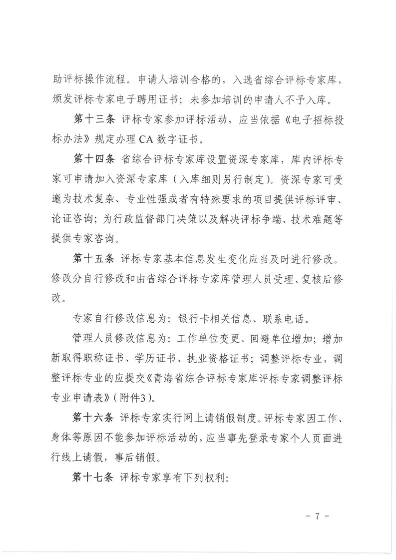 关于印发《青海省综合评标专家库和评标专家管理办法》的通知