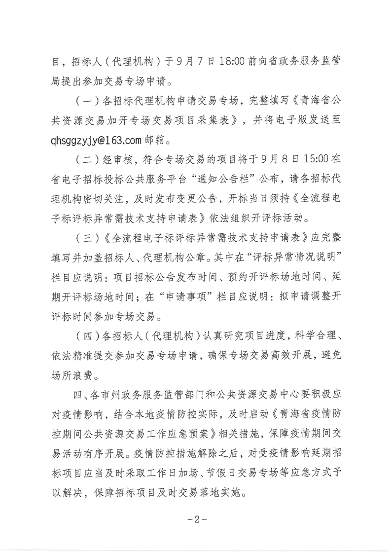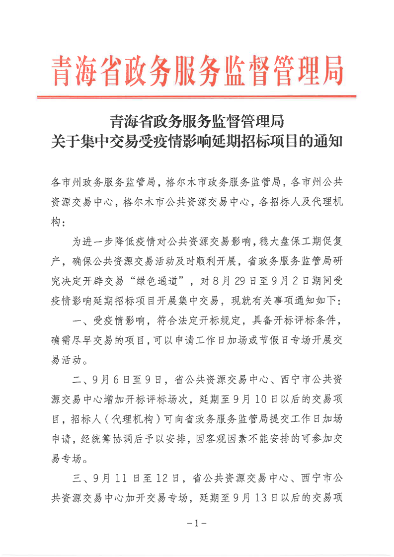 青海省政务服务监督管理局关于集中交易受疫情影响延期招标项目的通知