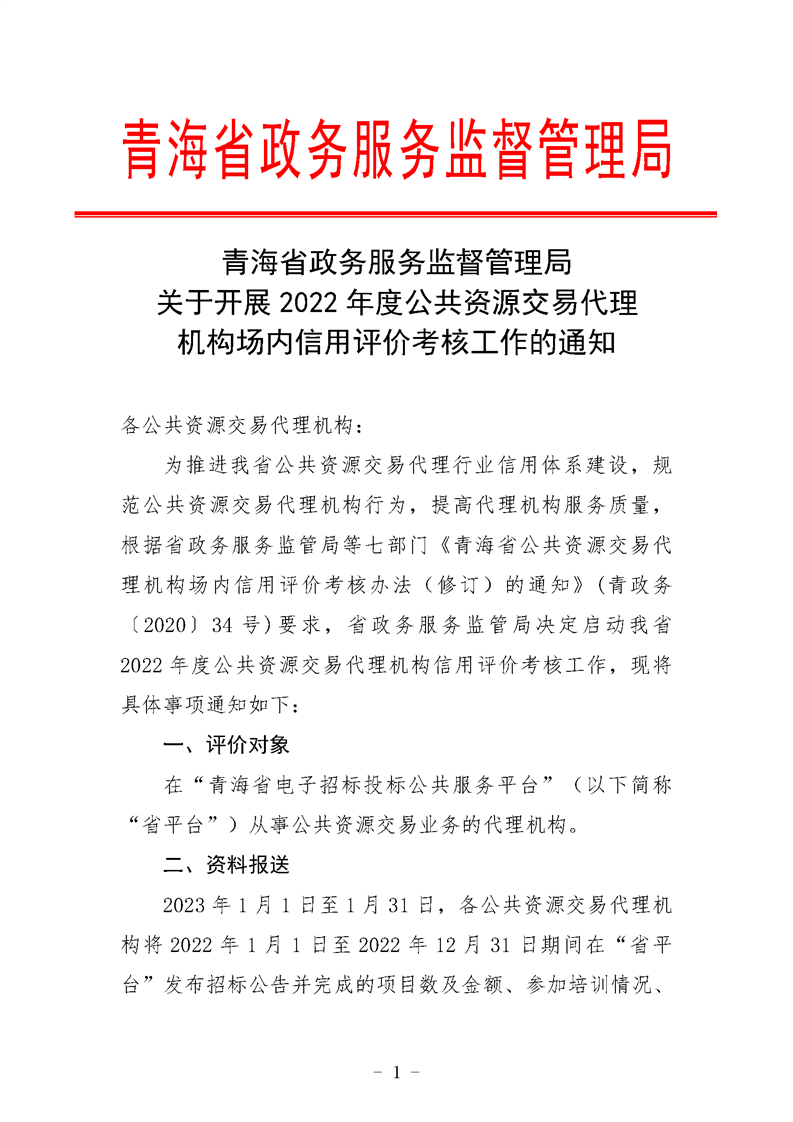 关于开展2022年度公共资源交易代理机构场内信用评价考核工作的通知