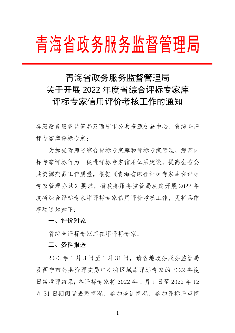 关于开展2022年度省综合评标专家库评标专家信用评价考核工作的通知