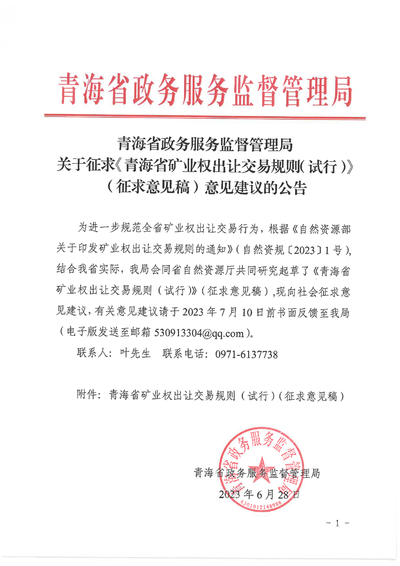 关于征求《青海省矿业权出让交易规则(试行)》(征求意见稿)意见建议的公告