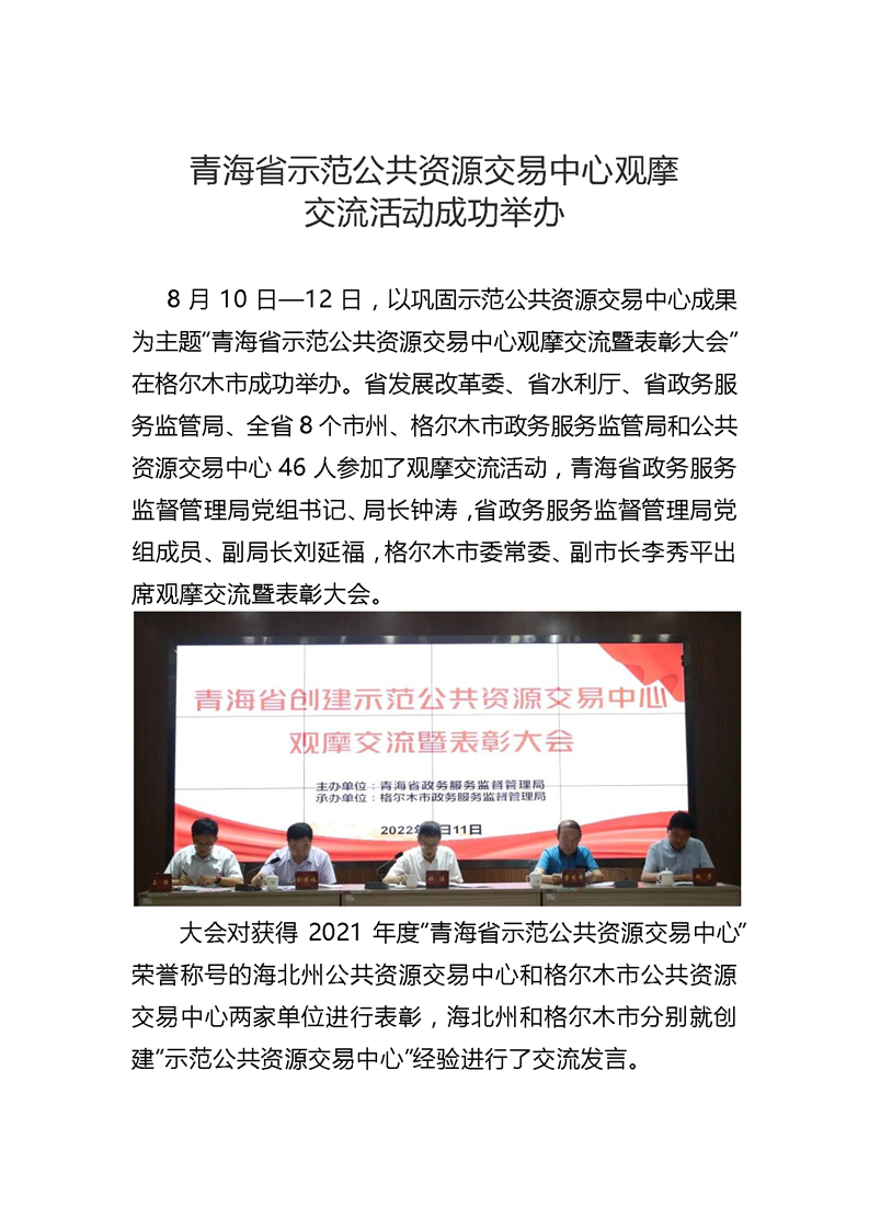 青海省示范公共资源交易中心观摩交流活动成功举办