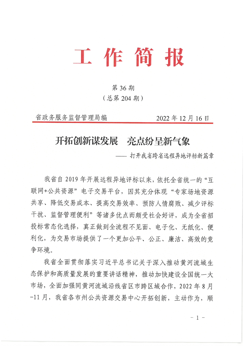 开拓创新谋发展,亮点纷呈新气象--打开我省跨省远程异地评标新篇章