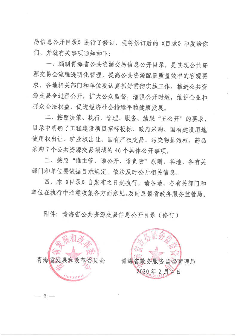 关于印发《青海省公共资源交易信息公开目录(修订)》的通知