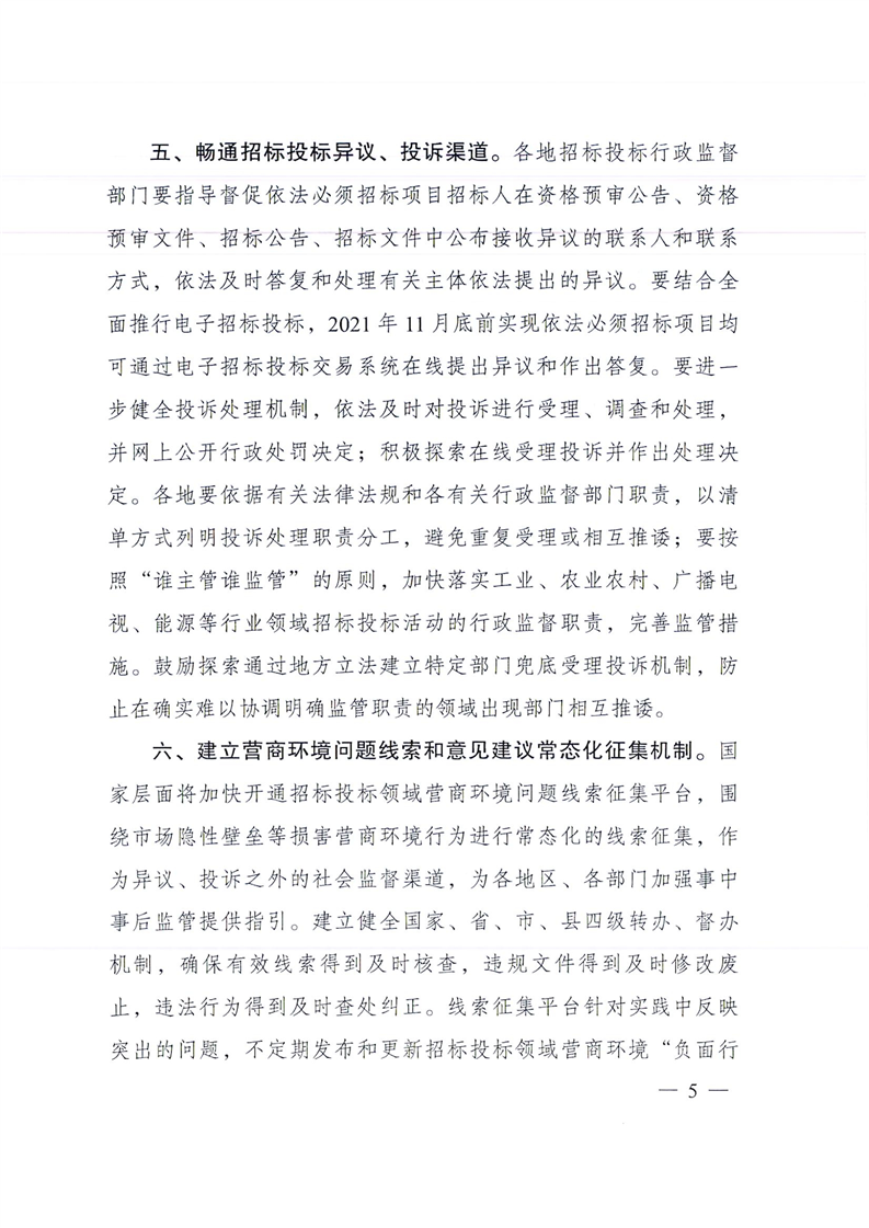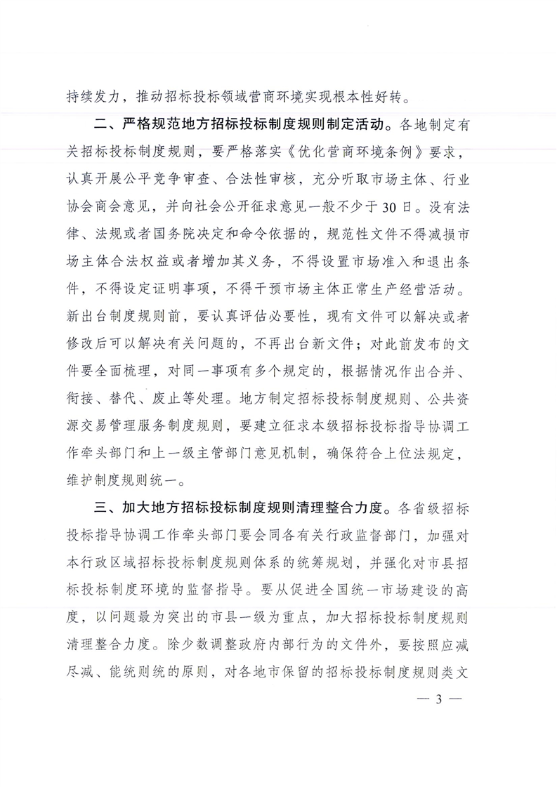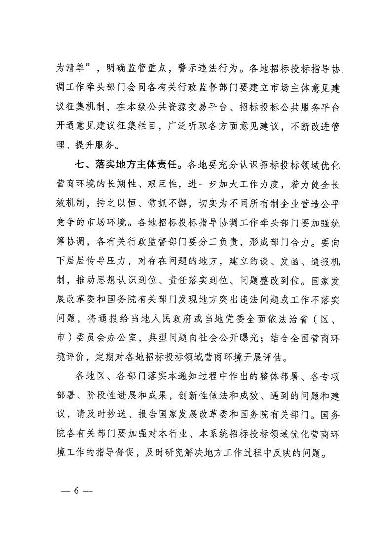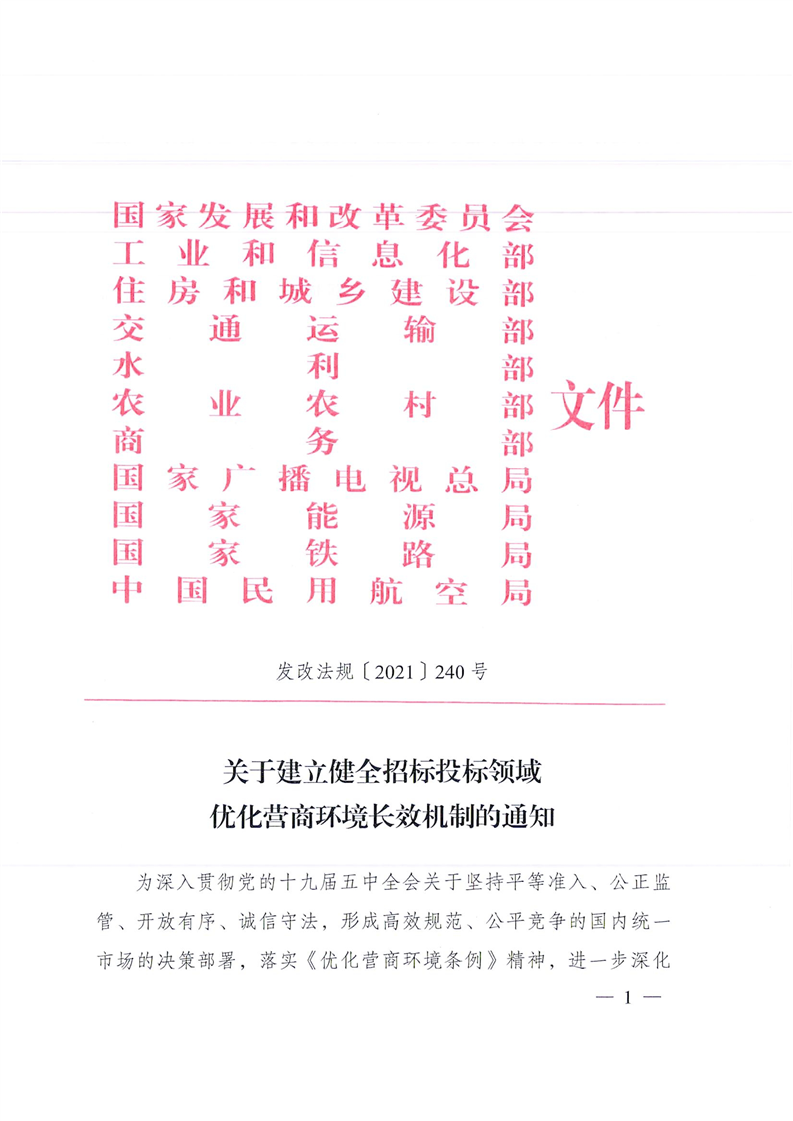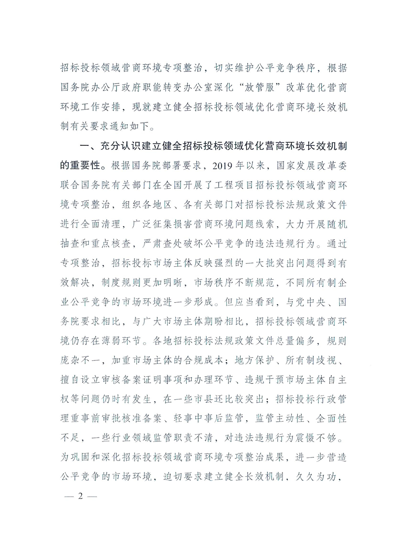 关于建立健全招标投标领域优化营商环境长效机制的通知