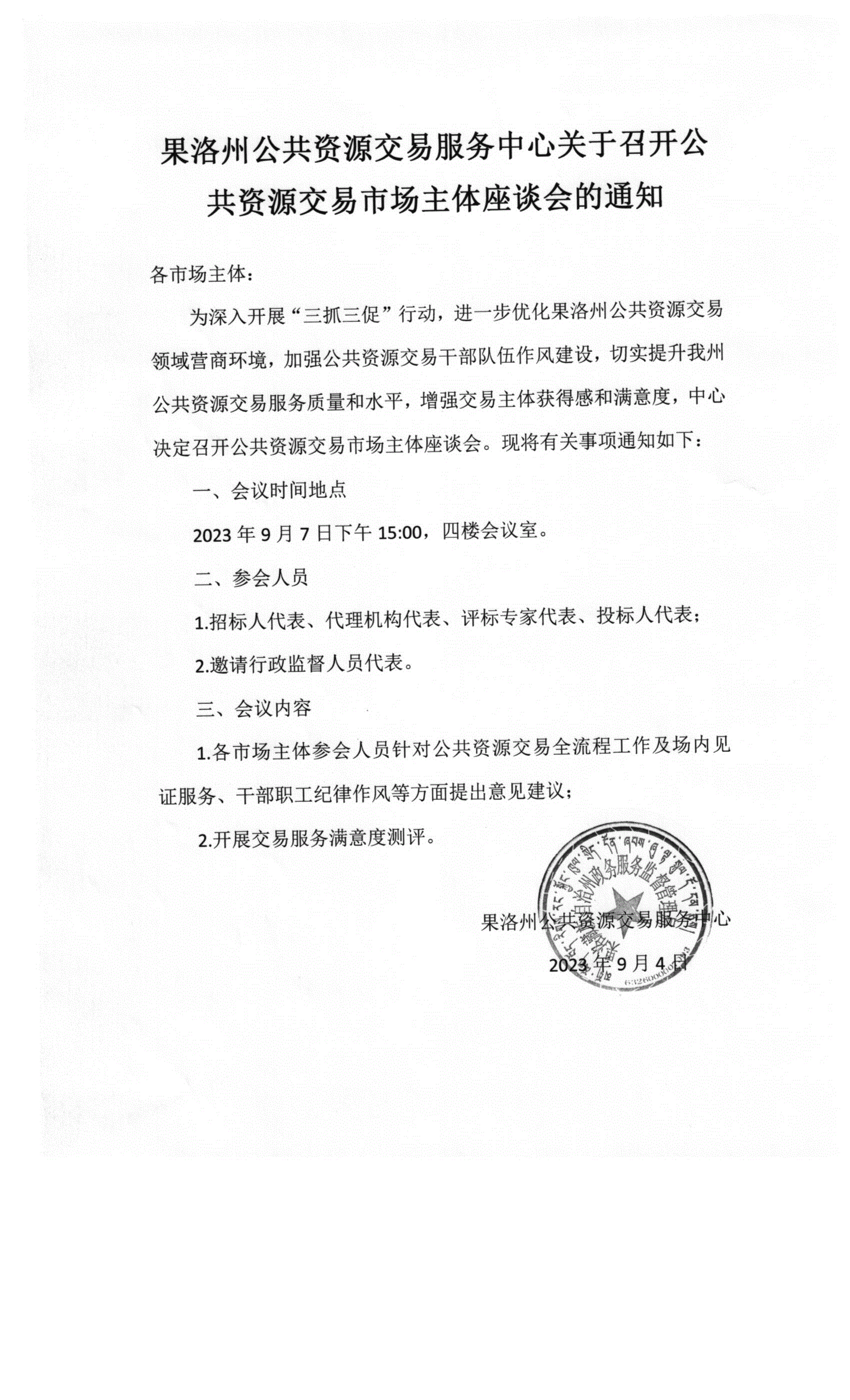 果洛州公共资源交易服务中心关于召开公共资源交易市场主体座谈会的通知