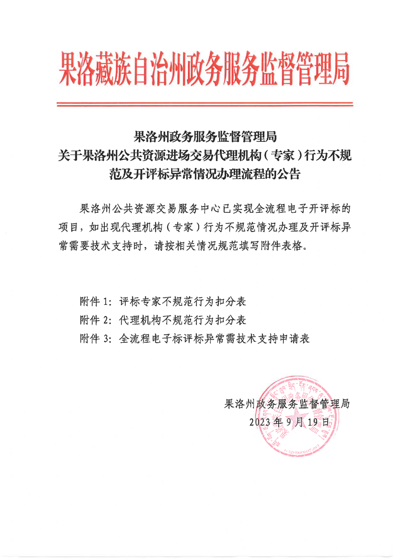 关于果洛州公共资源进场交易代理机构(专家)行为不规范及开评标异常情况办理流程的公告