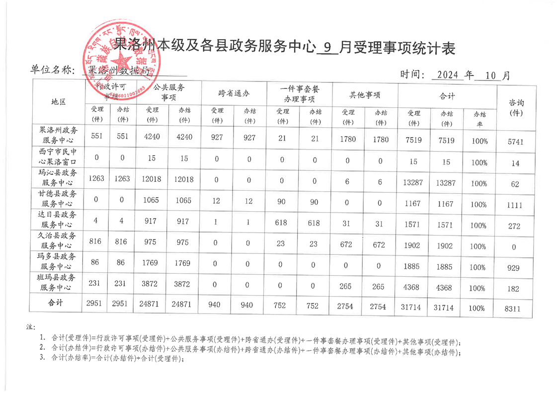 2024年09月份果洛州公共资源交易和政务服务办件情况