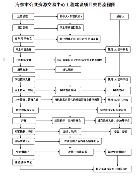 海东市公共资源交易中心工程建设项目交易流程图