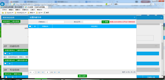 2、选择所要抽取专家的项目,点击【确认选择】进入【新增项目信息页面】