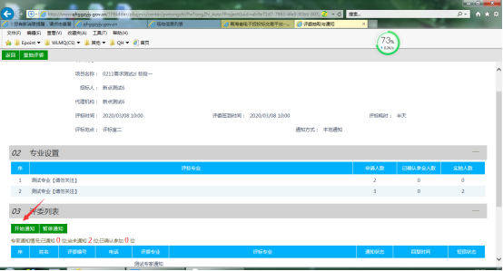 在【工程业务】--【专家抽取】菜单下点击【自动通知】点击相应项目后的操作按钮进入抽取通知页面