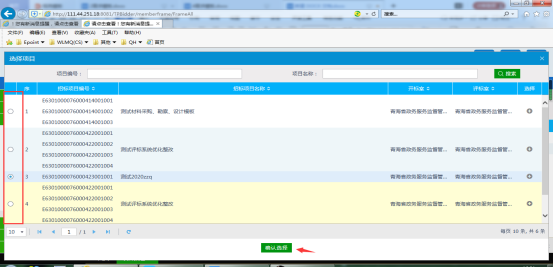 2、选择所要抽取专家的项目,点击【确认选择】进入【新增项目信息页面】