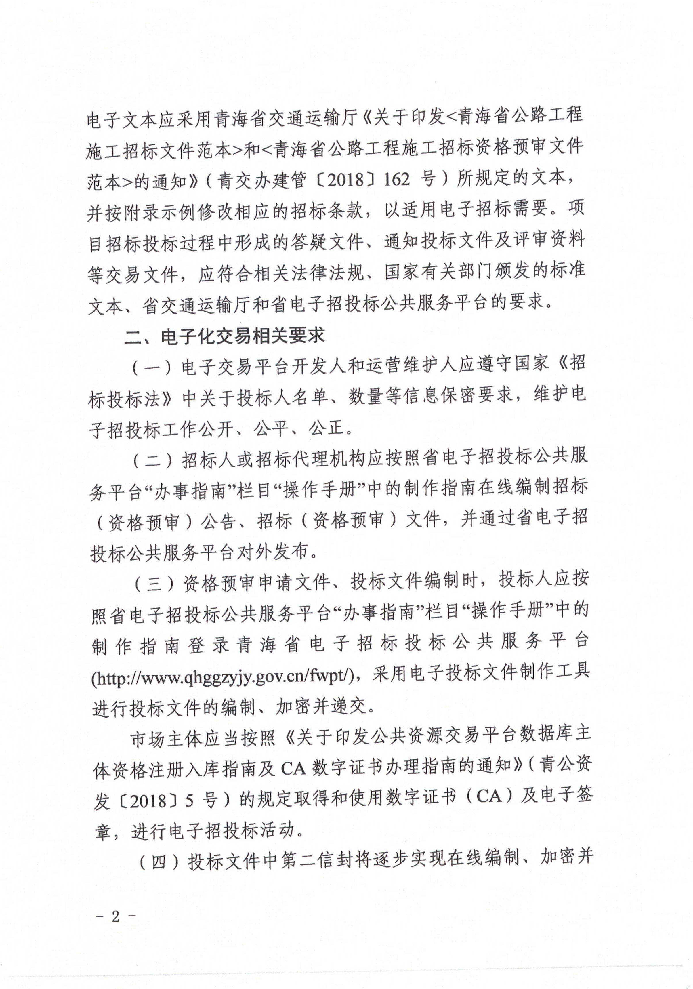 转发青海省政务服务监督管理局 青海省交通运输厅关于交通工程电子化交易相关要求的通知