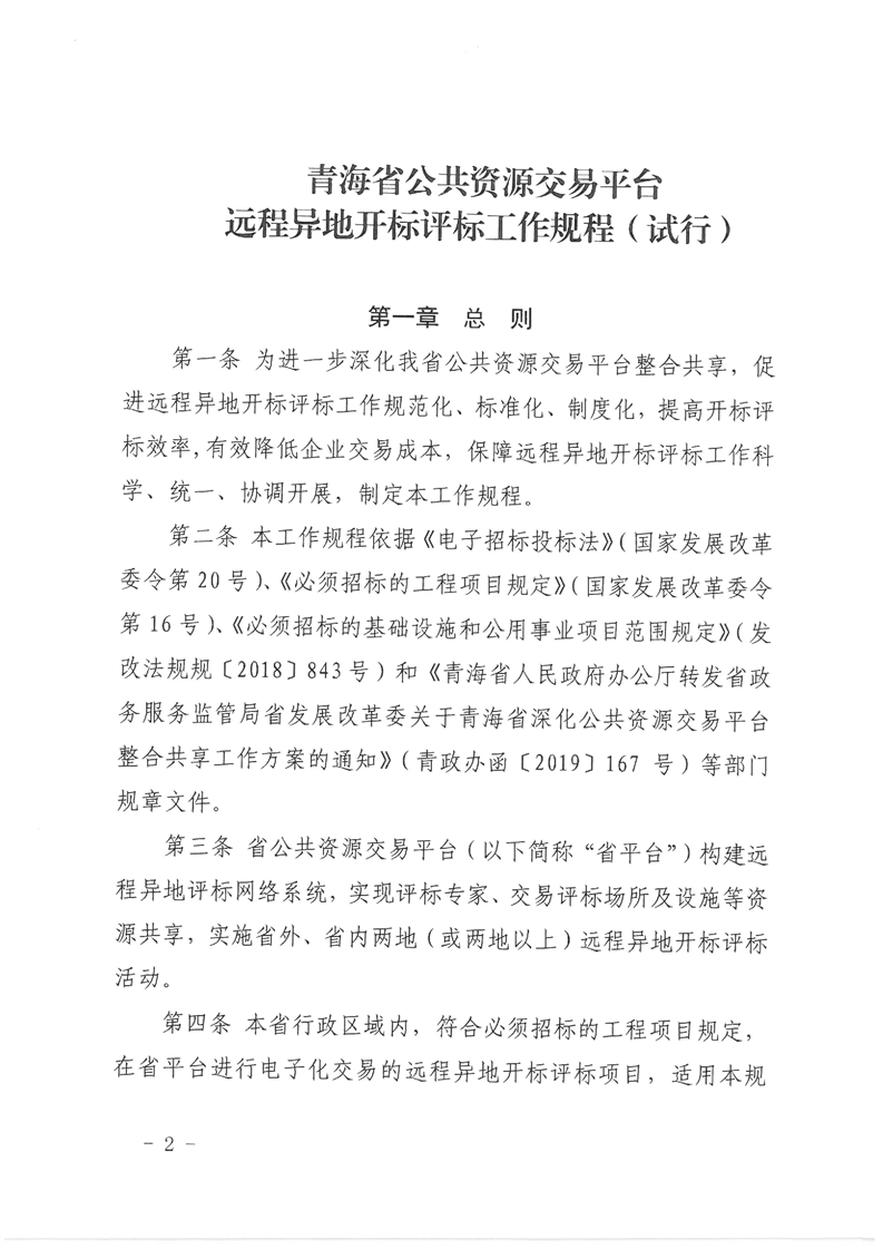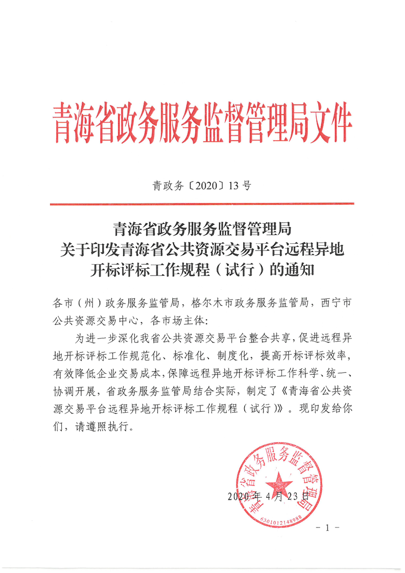 青海省公共资源交易平台远程异地开标评标工作规程(试行)