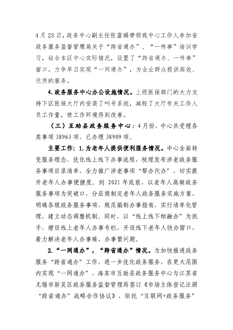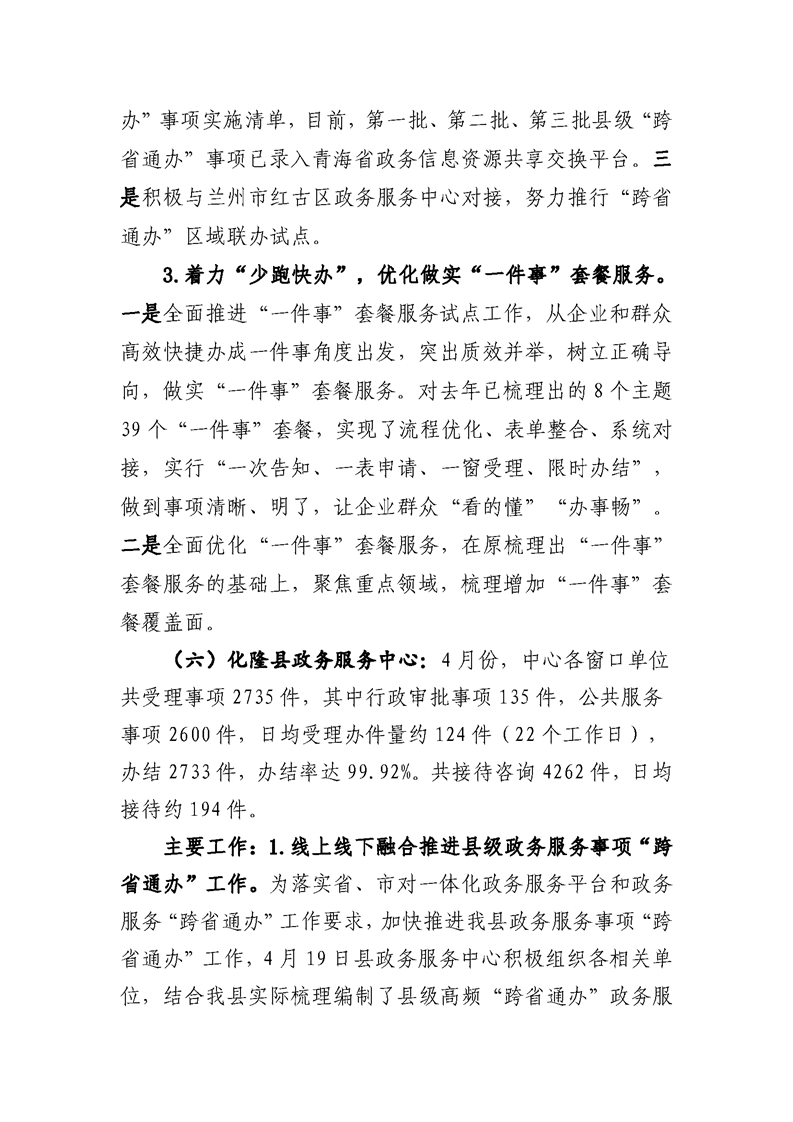 4月份政务服务和公共资源工作情况